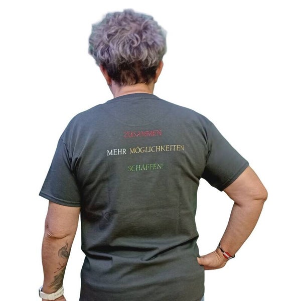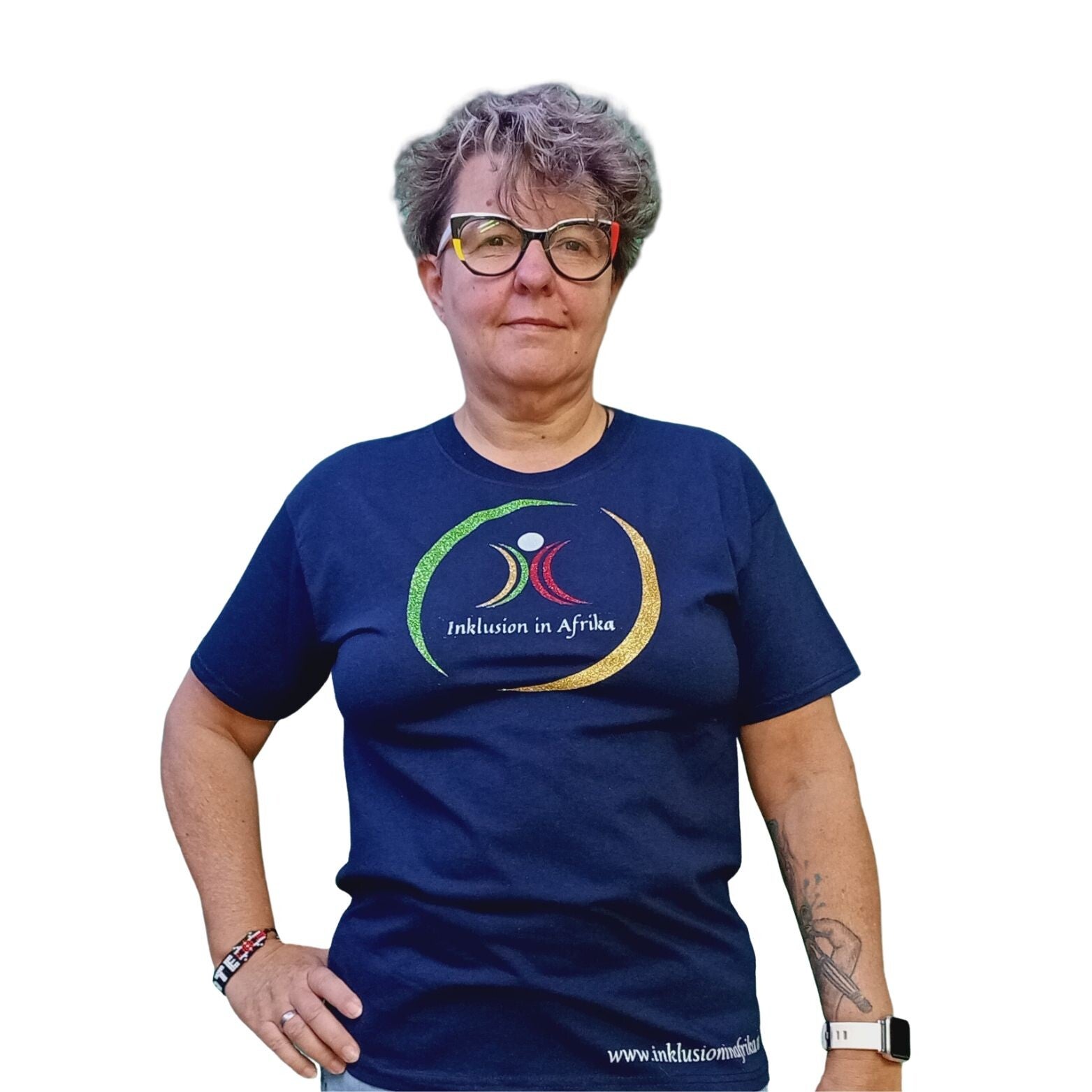 T-Shirt der Marke Fruit of the Loom mit Logo Inklusion in Afrika ist gerade geschnitten und mit Glitzerfolie bedurckt.